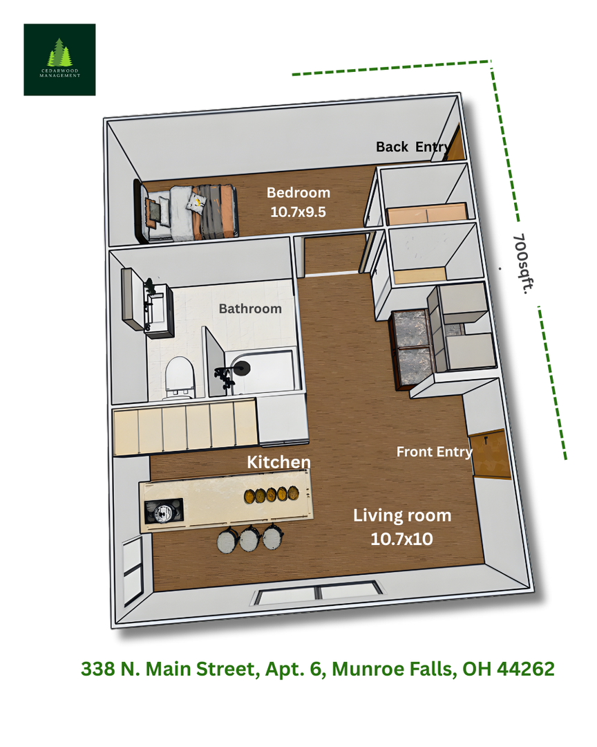 This beautiful, cozy one bedroom apartment is located in Munroe Falls. It's within close proximity to a busy shopping center, bus stops and highway. Laundry on site, Electricity, water, sewer, trash, & covered parking all included!
